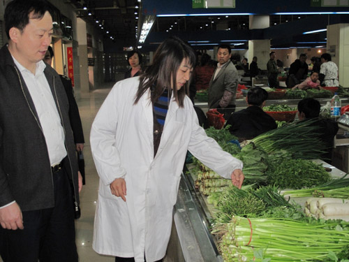 “五一”节即将来临,为保障节日期间食品安全,彻底排查问题韭菜,29日上午,区食安办主任常建新带领相关部门对所辖的中山门菜场、浦南南村菜场等六家菜场进行督查,通过现场取样、查看验收登记本、检查索票索证等情况,重点监测了蔬菜、水产品、肉制品等品种的农药残留情况。区食安办还将立足长效管理,继续加强执法力度,提高检测能力,严把食品安全源头关,确保人民群众的饮食安全。 天宁区卫生局