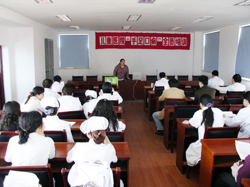 根据2010年手足口病流行情况和防控工作总体要求,为了进一步提高医务人员对手足口病的诊疗、重症病例识别和救治的能力,儿童医院加大全院卫生技术人员手足口病防治知识培训力度,先后派出重点科室的儿科主任、ICU科主任参加省、市举办的手足口病医疗救治培训班。并于于2010年5月11日与5月13日连续举办两期手足口病全员培训,来自儿科各病区、门急诊、重症监护室、社区的200多名医务人员参加了培训。 三病区主任郭宁、ICU病区主任邹国锦、院感科科长潘昌明围绕“2010版手足口病预防控制指南”、“重症手足口病的识别与救治”、“科学预防手足口病医院感染”等三个题目进行了重点培训,分别就手足口病的病原学、流行病学、病例定义、实验室检查、疫情报告、预防控制措施、重症病例的诊断治疗等方面进行了详细的、系统的讲解。院感科科长潘昌明在培训中还特别针对手足口病的疫情登记、报告时限、报告程序等内容进行了强调,防止出现误诊、漏诊和漏报现象。 针对手足口病防治具体工作,儿童医院及时培训医疗防治队伍,强化分类指导,把好手足口病防治的第一道关,以确保医院手足口病各项工作有序进行,切实做到疾病的“早发现、早报告、早隔离、早治疗”,提高医院整体医疗救治水平。 市儿童医院