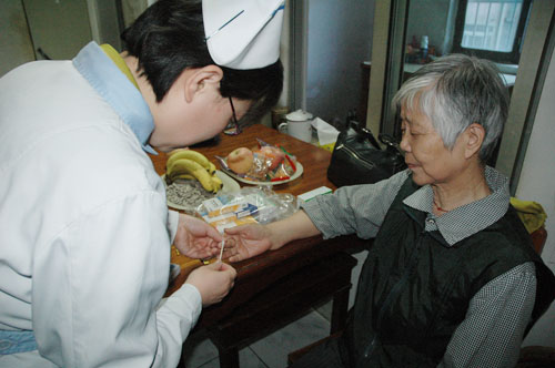 家住勤业小区的徐奶奶不久前因糖尿病在常州市中医医院住院治疗。她没想到病愈出院后没多久,她曾住病区的护士长就带了二位护士上门服务,为她进行了测血糖、量血压等体格检查,此举让她感到心里甜丝丝的。其实,这是我市中医医院护理部于护士节期间推出的出院病人家庭随访服务,白衣天使们用这样一种特殊的方式度过了一个有意义的“护士节”。 今年5月12日是第99个护士节,本次护士节的主题是:优质护理,服务社区,护士引领长期护理。如何让第99个护士节过得更有意义,市中医医院护理部提出了“天使之爱”家庭随访活动。每个病区选定了二至三位出院病人,由护士长带队开展家访活动,把天使的爱送到患者家中。于是,该院十七个病区的51位护理人员在护士节前后分别走进近五十个出院病人的家中,详细了解其出院后的身体状况、服药情况,并有针对性地进行饮食指导和康复锻炼。通过此次别开生面的“天使之爱”活动,旨在拉近护士与病人、护士与家属之间的距离,营造医患互动的良好局面。 近年来,我市中医医院坚持以病人为中心,始终把护理工作放在重要位置,想病人所想,急病人所急,积极采取有效措施为病人提供高效、优质、便捷的护理服务,赢得了广大患者和社会各界的广泛赞誉。 市中医院