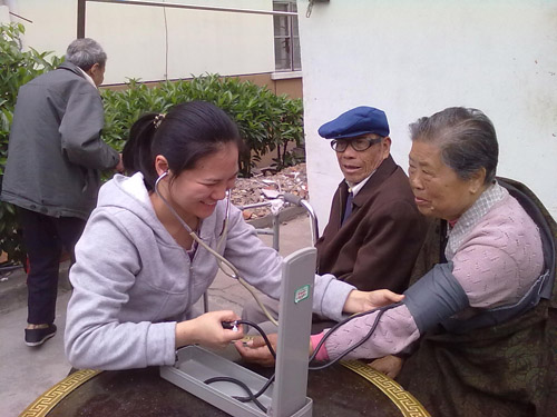 2010年护士节的主题是“优质护理,服务社区,护士引领长期护理”。护士节前后,常州市肿瘤医院志愿者服务大队的护士们以病区为单位,进入社区、养老院等,为社区居民和老人们义诊,提供慢性病护理咨询和健康指导、发放健康宣传材料、回访出院患者等服务。共有30多名志愿者分别到勤德家园社区、勤业社区、米市河社区、勤业晚晴园及3位出院患者家中进行义诊服务,累计免费测血糖60余人次、测血压220余人次、发放慢性病科普宣传资料400余份、发放志愿者爱心服务卡100余张,接受健康咨询250人次左右。医院放疗二病区的志愿者还为勤业晚晴园一位98岁的孤老和勤业二小的部分退休教师进行了健康体检,并送去价值二百多元的生活用品;肿瘤内科十病区的志愿者为一名患有多种慢性疾病、经济窘迫的出院患者送去500元慰问金。 志愿护理服务进社区的开展,受到了社区居民和老人们的欢迎和一致好评,同时也增强了护理人员的服务意识,塑造了医院良好的社会形象,今后医院志愿者将针对社区特点和针对居民需求,定期开展志愿护理服务,促进居民健康水平的进一步提高。 市肿瘤医院