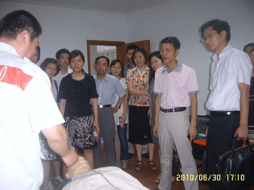 6月30日下午,团市委副书记黄飞叶,权益部部长顾小露带队,常州市综治委预防青少年违法犯罪工作领导小组成员单位及常州市未成年人保护委员会成员单位的相关负责人一行二十余位同志在局团委副书记王燕的陪同下来到我中心调研青少年维权工作。 调研组成员首先参观了青少年自护教育基地,饶有兴趣观看了急救医生现场示范操作的心肺复苏急救流程,并详细询问了解了基地开展活动的情况。中心领导还就当前我市青少年自救互救水平的现状和团市委领导进行了深刻的交流和探讨。随后,调研组一行还参观了120指挥大厅。 近年来,我中心的团工作又有了新的亮点。把持续不断地深入开展有利于青少年的自护教育活动作为工作重点。自09年11月常州市青少自护教育基地在我中心成立以来,中心面向全市各大院校举办大型急救讲座十余次,发放青少年自护教育手册百余册,受益人数达5986人次。团市委组织的这次调研,对我中心的团工作是鼓励更是机遇,必将进一步推动中心团工作的开展。 市急救中心
