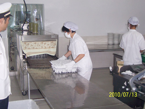 为了进一步规范全区餐饮具集中消毒单位生产经营活动,切实加强餐饮具卫生安全监督管理工作,保障人民群众身体健康。根据上级卫生部门的通知精神,钟楼区卫生监督所组织开展餐饮具集中消毒专项检查。 2010年7月13日上午,钟楼区卫生监督所卫生监督人员联合常州市卫生监督所、常州市电视台等单位对辖区内一家餐饮具集中消毒单位(钟楼区西林海纳齐心餐具消毒公司)进行了检查。该单位具有专用清洗消毒器械、设备,清洗场所环境卫生良好,从业人员均持有有效健康证明、穿戴清洁的工作衣帽上岗操作等,基本符合餐饮具集中消毒规范要求。同时,检查组现场提出应增加专用更衣场所,产品包装增加生产日期、保质期等内容的卫生监督意见。 钟楼区卫生局
