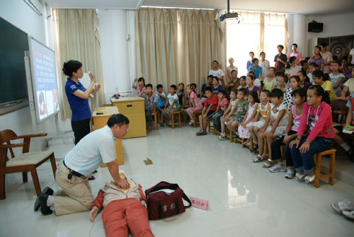 聋哑小朋友作为一个特殊的弱势群体,他们更需要一些日常急救知识的培训,在聋哑学校手语老师的配合下,急救医师通过多媒体图片、现场演示等多种形式为市聋哑学校百余名学生讲解了心肺复苏、意外伤害、灾害事故等方面的自救、互救知识,并指导聋哑学生进行了现场模拟演练。 同学们或看得、或听得很认真,在老师的帮助下都能积极主动地进行交流。包扎对于学生们来说是个难点,急救医师耐心地给他们讲解,手把手地让他们在自己的身上感受、练习。在较短的时间内,很多同学都学会了简单的包扎方法。培训最后,现场还组织了一场包扎比赛,同学们包扎地整齐均匀,松紧合适,很让人佩服。 培训结束后,急救中心团支部代表青少年自护教育基地向参加此次培训的学生赠送了青少年自护手册。 此次活动,急救中心的青年医师们为聋哑儿童送去了日常急救的知识和技能,带去了社会对他们的关爱。同时,聋哑儿童也让急救中心的青年医师们受到了一次良好的社会道德和职业情感教育,感受到生命的可爱,在今后的工作生活中更加重视和珍惜每一个生命。 市急救中心