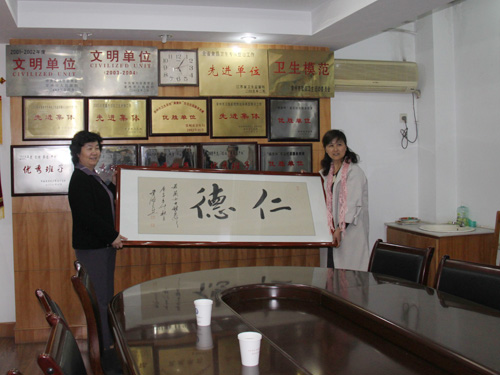 11月9日,吴青霞书画院党支部书记严卫众亲自送来了我市著名书法家书法横匾5幅、《吴青霞画册》2套,为我所二支部与书画院党支部结对共建积淀单位文化内涵。