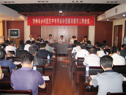 会议由常州卫生高等职业技术学校封苏琴副校长主持,市卫生局科教处盛丽芳处长对我市594名在岗乡村医生中专学历补偿教育的培养目标、办学形式、组织管理、教学安排、教学设置、管理要求、各级管理部门的职责、教学评估等方面作了阐述。特别强调了中专学历补偿教育采取的是半工半读开放式教学,是集中面授、分片辅导、远程视频教学和个人自学等形式相结合的新教学模式,要求学员必须刻苦自学,掌握方法,完成学业,目标是2010年取得执业助理医师资格。省卫生厅科教处唐宁一助理调研员对我市在岗乡村医生中专学历补偿教育前期的组织工作给予高度肯定,希望在今后三年的教学组织和管理中总结经验,在全省发挥示范作用,并提出三点要求:一是各级卫生行政部门要加强管理、落实工作责任,履行教学督查、考核职能,调动学员的学习主动性。二是各主办学校、辅导中心和教学点要加强教学过程、教学环节和教学辅导的管理,确保教学质量。三是加强教学互动,教学教材和设备提供单位要主动服务,学员与教学辅导中心及管理部门要及时沟通,反映学习中存在的困难和问题,务求教育实效。 会上,好医生医学教育中心人员详细介绍了在岗乡村医生中专学历补偿教育视频教学管理系统的操作方法和流程,常州卫校作为市辅导中心详细部署了第一学期教学工作计划、课程设置和教学辅导安排。会后完成了远程视频教学设备免费使用的协议签订、教育设备和教材的领取、学员学习卡发放等工作。 局科教处