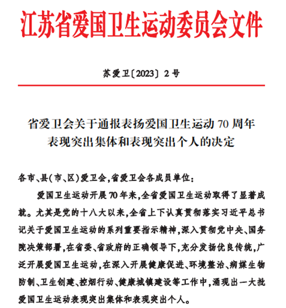 | 天宁区卫生健康局获评全省爱国卫生运动70周年先进集体 |