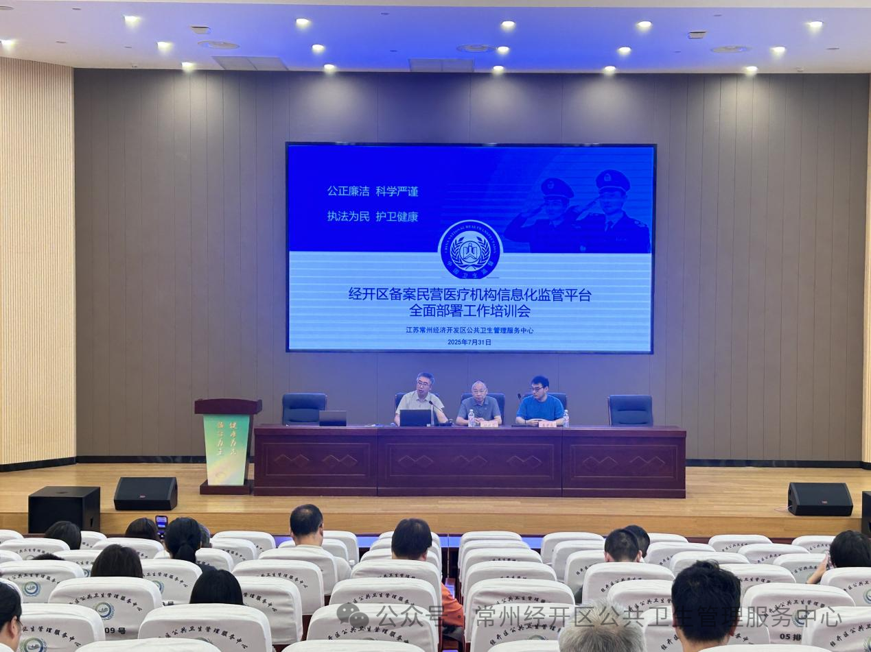 为进一步提高医疗机构及其从业人员依法执业意识,规范医疗机构服务行为,保障人民群众生命安全,经开区公共卫生管理服务中心于2025年7月31日召开常州市诊所信息化监管平台全面部署工作培训会,全区共92名诊所负责人参会。 经开区公共卫生管理服务中心主任刘建荣做开班动员,强调民营医疗机构要不断加强依法执业意识,主动使用信息化监管平台,充分发挥信息化监管平台优势,规范诊所行为,提升医疗质量。软件平台工程师向民营医疗机构负责人详细讲解了常州市诊所信息化监管平台安装、使用等机构端工作要点。 下一步,经开区公卫中心将密切配合技术服务机构开展诊所信息化监管平台的现场部署工作,落实职责分工和计划安排,完成诊所部署工作,充分借助信息化监管平台,实现卫生监督执法的快捷、便利和高效。 |