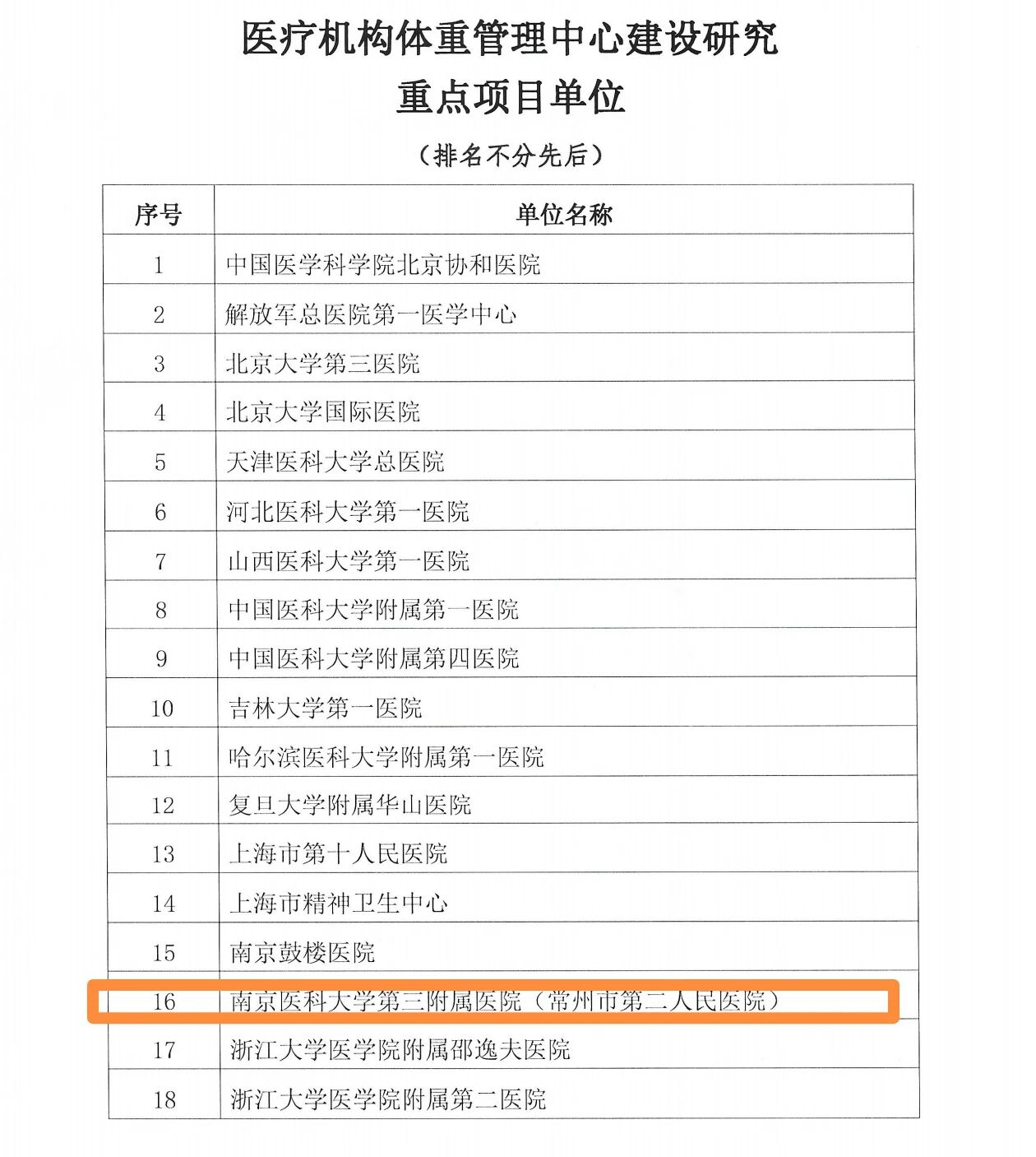 | 常州二院获评国家卫健委医院管理研究所“医疗机构体重管理中心建设研究重点项目单位” |