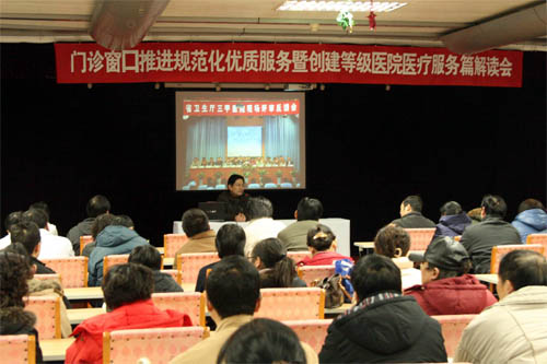 这次会议是院工会和门诊部为在2010年进一步推进门诊窗口创优服务,提高全体医护人员服务意识和责任意识,增强发展信心,为创建“三甲”医院多做贡献而召开的一次动员大会。 门诊部主任许峻首先向大家介绍了门诊部在2009年的工作情况以及2010年的工作思路,通报了省卫生厅在2009年11月份对医院的暗访情况,指出了门诊的问题所在,提出了整改措施,号召大家一定要以院为家,增强责任感和使命感,树立荣辱观,进一步创优门诊服务,树立良好的二院形象。 院纪委副书记、江苏省等级医院评审专家组成员屠卫荣通过丰富的事例,围绕“增强责任心、关爱病人、尊重病人、增强服务意识、规范服务、加强医患沟通、注意工作方法、有错必纠”等八个方面为大家作了“真诚服务,用心服务”的专题讲座,帮助大家对创建“三甲”医院“医疗服务”相关工作要求的认识。 副院长成金罗到会并讲话,他对全体门诊医护人员利用下班时间积极参加活动表示钦佩和感谢,并就提高认识,齐心协力创建“三甲”医院和努力创优门诊服务提出了三点希望。他要求大家一要提高自身的基本素质,牢固树立“尊重生命、敬畏生命,全心全意为病人服务”的思想;二要换位思考,自我反思,不断创新工作,完善服务流程,发自内心为病人服务;三要平衡心态,按照岗位职责的要求,尽全力做好本职工作。 市二院