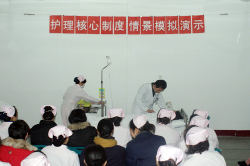为了进一步规范护理服务行为,提高护士对护理核心制度的执行力,给病人营造优质安全的服务环境,常州七院护理部在组织全院护士认真学习护理核心制度并进行理论考试的基础上,于 演示结束后,护理部主任王玉华对本次活动进行了点评,同时对全体护理人员提出四点希望:1.转变观念,高度重视;2.认真学习,人人知晓;3.规范行为,狠抓落实;4.强化督查,确保效果。 市七院