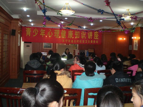 二月的常州,寒风料峭,但天宁街道新丰街社区会议室内却是暖意浓浓,2月4日上午,来自市二十四中的十多位学生,正聚精会神地在听一堂青少年心理健康知识讲座。原来这是天宁街道古村社区卫生服务站与市二十四中、新丰街社区联合为青少年学生组织的一次寒假活动。 青少年心理健康教育是目前社会各界广为关注的话题,频繁出现的青少年心理健康问题以及两代人的心理冲突,甚至出现相互伤害的事件,警示着社会必须重视青少年的心理健康问题。主讲人――全科医师金萍从案例分析入手,归纳总结出青少年心理健康的“六要”和“六不要”。进而引导青少年认识自我心理发展,关注心理健康,树立积极向上的生活心态。讲座结束后,金医生还与学生进行了对话和互动。 天宁区卫生局