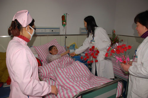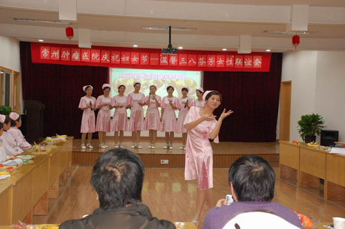 在国际“三八”妇女节来临之际,常州市肿瘤医院重点围绕“平等、发展、和谐”的主题,共庆百年三八、共话百年进步、共谋发展大计,工会和妇委会共同组织开展了隆重、热烈、务实的“六个一”系列庆祝活动,即:为全院女职工送上一封节日慰问信、组织一次妇女权益保护知识学习、 “阳光使者”为在院女病人送上一支康乃馨、组织一次社区义诊和讲座、在院报开设一期女性专栏、举办一次妇女联谊会。 随后,来自全院各个科室的女职工们以欢快的歌舞、优美的歌声展示了“白衣天使”们多才多艺、健康乐观的风采,男职工也通过单口相声、独唱等形式向女职工们致以温馨的祝愿。联谊会上,每一位女职工都收到了一份精美的礼物,优秀女职工代表――医院肿瘤细胞实验室的刘永萍主任上台发言,鼓励全院女职工同心同德,努力奋进。另外,联谊会通过有奖竞猜、击鼓传花等富有趣味的游戏形式,将《妇女权益保障法》、《婚姻法》等与保护妇女权益相关的法律法规知识贯穿于始终,台上台下、互动联欢、高潮迭起、笑声不断,既使一些与“三八”节和妇女权益相关的知识深入人心,更使整台联欢会活泼生动、温馨美好。 在此之前,医院还组织了部分专家走进社区,分别在文亨社区、米市河社区和花园阳光幼儿园开展“乳腺癌、宫颈癌的预防和早期发现”和“爱耳日”儿童听力保护讲座健康知识讲座,受益群众近三百人,发放各类常见病健康教育处方八百多份,受到大家的一致好评。 据悉,医院还将于近期开展“女性恶性肿瘤”社区义诊活动,并在三月底出版的第一期院报上,开辟“芬芳女性”专栏,宣传医院临床一线科室具有时代性、创造性、示范性的优秀女知识分子典型,营造尊重知识、尊重人才的良好氛围。 通过开展系列活动,充分展示医院女职工健康向上、勇于创新、奋发拼搏的精神风貌,在实现医院职代会提出的2010年目标任务中切实发挥“半边天”作用。 市肿瘤医院