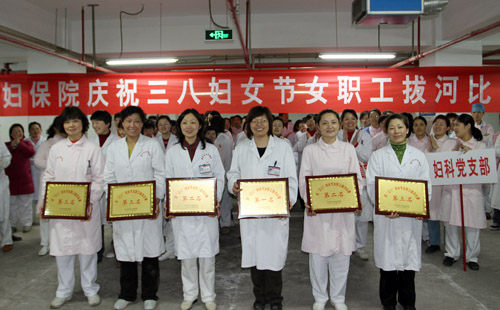 春回大地,万物复苏,正值“三八”国际劳动妇女节100周年之际,市妇幼保健院于 会上,许国锋院长向女干部们致以节日的问候和祝福。随后,医院省级巾帼示范岗――妇科九病区、市级巾帼示范岗――产科五病区、新生儿科、以及创建岗实验室作了经验介绍,受到了到会同志的一致好评。 党委书记高兰就医院巾帼示范岗的创建工作提出了三点要求,一是要明确创建工作的重要意义,二是要求各班组突出创建工作的主题,三是要扎实有效地实现创建目标。同时对女干部们提出了四点要求:第一、要多读书,做有文化的新时代女性;第二、要多思考,做有思想的新时代女性;第三、要多锻炼,做有智慧的新时代女性;第四、要大度宽容,做个阳光女人。除此之外还组织女职工利用业余时间开展了拔河比赛,虽然是一瞬间的较量,却再现了妇幼保健院女职工团结、拼搏、奋进的巾帼风采,在欢声笑语中,女职工愉快地度过了自己的节日。 市妇保院