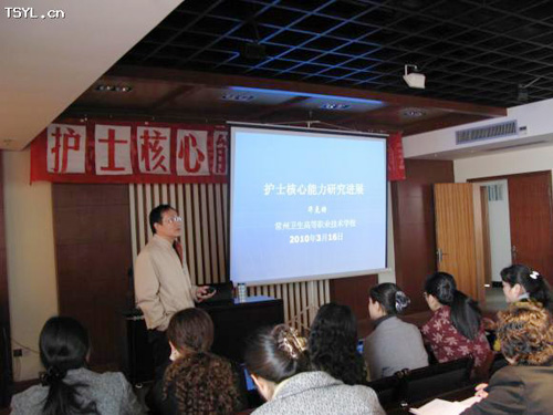 为提升护士核心能力培养,更好地为患者提供专业化的护理服务,推动常州市护理事业的创新与发展,同时促进学校与医院护理同仁的联系与交流, 讲座由原副校长华危持主讲,共五部分内容:护士核心能力的组成;护士核心能力的层级;护士核心能力的培养;护士核心能力的评价;护士核心能力的运用;能力培训案例介绍。整个会场座无虚席,来自常州市各大医院的护理人员和学校教工近两百多人聆听了讲座。 常州卫生高等职业技术学校