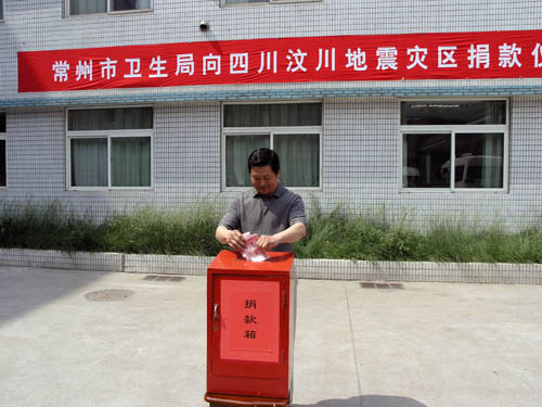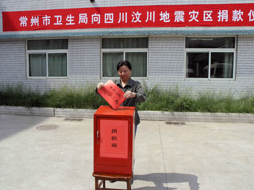 近日发生在四川省汶川地区的地震牵动着常州卫生系统每位职工的心。继组建2支医疗救护队,并向灾区派出医疗救护车队后,5月15日下午,市卫生局在市疾控中心举行向四川汶川地震灾区捐款仪式。 活动现场,市卫生局及直属各单位领导依次走向捐款箱,向灾区人民奉上卫生系统干部职工的一片爱心。面对突如其来的自然灾害,我市医疗卫生工作者纷纷表示,将用自己的实际行动,支援灾区群众,帮助受灾民众共渡难关。 局办公室
