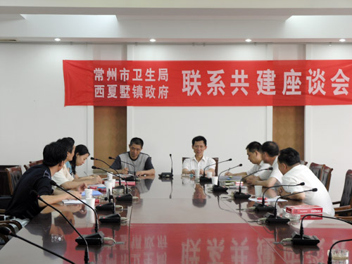 2008年7月23日,市卫生局曹建荣书记带领有关处室负责人赴西夏墅镇政府与当地领导进行了综治联系共建座谈。双方交流了上半年综治工作情况与存在问题,并就下半年工作进行了探讨。会上,市卫生局与西夏墅镇政府签订了《联系共建协议书》,并围绕创建工作的总体目标,共同研究制定了符合西夏墅镇实际情况的创建工作规划和措施,以及共建制度和共建计划。曹书记表示,市卫生局将积极协助研究解决创建工作中遇到的具体困难和问题,促进社会治安综合治理各项措施的落实。双方认为,今后要进一步加强联系,团结合作,为建设平安常州共同努力。会后,与会人员冒着酷暑参观了镇卫生院的建设工地与镇政法大楼。