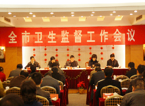 会议由监控处姚辉处长主持,虞国良副局长作了工作报告。虞局长首先对2009年全市卫生监督工作作了简要回顾,充分肯定了2009年我市卫生监督工作取得的成绩,并对2010年全市卫生监督工作任务和措施进行了部署。要求2010年各地要在加强卫生监督体系建设的同时,突出重点,着重做好以下工作:一要全力以赴,认真做好十七届省运会卫生监督保障工作;二要积极准备,依法履行食品安全综合协调职责;三要深入推进“五小”行业示范创建工作;四要做好市政府规定的餐饮消费环节卫生监督执法工作;五要加强医疗卫生行业和传染病防治监督执法;六要强化职业病防治和放射防护监管工作;七要做好公共场所和饮用水监督管理;八要加大卫生监督宣传力度。 会上还对2009年度卫生监督考核结果进行了通报。市卫生监督所与各辖市、区卫生监督所签订了目标考核责任书。 局监控处