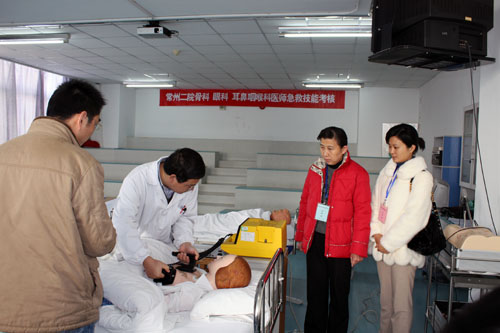 为提高眼科、耳鼻咽喉科、骨科医师危急重症抢救技术水平与能力,保障医疗质量与医疗安全,2009年12月,市卫生局组织开展局属相 考核当天,市卫生局胡丹副局长到各考点巡考。 局医政处