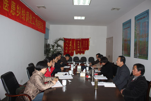 1月14日,我市在城区医患纠纷调处中心召开了城区医患纠纷人民调解工作座谈会,市综治办、市司法局、市卫生局、市公安局、天宁区司法局、城区医患纠纷调处中心负责人等参加了会议。会议回顾了2009年来城区医患纠纷人民调解委员会(调处中心)的工作情况,共同研究解决医患纠纷人民调解工作发展中的经费人员问题,展望了医患纠纷人民调解工作发展前景。 城区调处中心2009年共接待来访群众2003人次,受理医患纠纷200件,调结81件,调解协议履行率100%,经调解后未出现诉至法院的情况,取得了良好的社会效果和法律效果,实现了“三个满意”、“三个下降”。“三个满意”,即:案结事了,患方满意、医方满意、领导满意;“三个下降”,即:涉医上访事件下降,涉诉医患纠纷案件下降,涉医投诉率下降。为构建和谐医患关系,有效遏制医患纠纷的多发态势发挥了积极作用,为常州创建全国平安医院先进地区奠定了基础。 最后市综治办史国瑛副主任充分肯定了市城区医患纠纷调处中心一年来的所做的贡献,并对在一线工作的调解人员表示感谢和敬意!同时指出2010年调处中心要继续在学习交流、加强自身建设等方面工作进一步完善;作为市综治办,2010年将加大市城区医患纠纷调处中心人员保障、经费保障及相关部门配合工作的牵头协调工作。