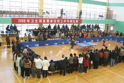 为期2天的卫生局直属单位职工乒乓球比赛于 市肿瘤医院、局机关、中医院、一院、三院、疾控中心代表队获男子团体前6名,二院、卫校、肿瘤医院、儿童医院、一院、妇保院代表队获女子团体前6名。医科所邬东升、中医院葛明、肿瘤医院刘草和薛红波、局机关祖熙阳、三院唐风雷获男子单打前6名,七院吴玉芬、一院张玲、妇保院宋文英、卫校徐霞敏和周燕娟、二院刘静获女子单打前6名。眼耳鼻咽喉医院代表队、中心血站代表队获道德风尚奖,七院代表队获优秀组织奖。 本次比赛共吸引了16支代表队参赛。比赛中,年轻队员斗志旺盛,中年选手沉着应战,大家每分必争、顽强拼搏,精彩激烈的比赛不时获得观众的热烈喝彩。男子单打决赛更是把比赛推向高潮。各单位领导也亲临现场为队员加油鼓劲,并作战略战术指导。组委会邀请我市高水平裁判员担任裁判,确保了比赛的公平公正。 通过比赛,大家深深感受到卫生文体文化的浓厚氛围,许多领导亲自参加比赛,展示了他们在生活中的亲切随和。竞争队员们之间相互勉励的笑容,相互祝贺的话语,展现了友谊第一的温馨。比赛充分体现了卫生人乘奥运东风团结拼搏争第一和迎2009鼓劲施压展风采的精神面貌。 局工会
