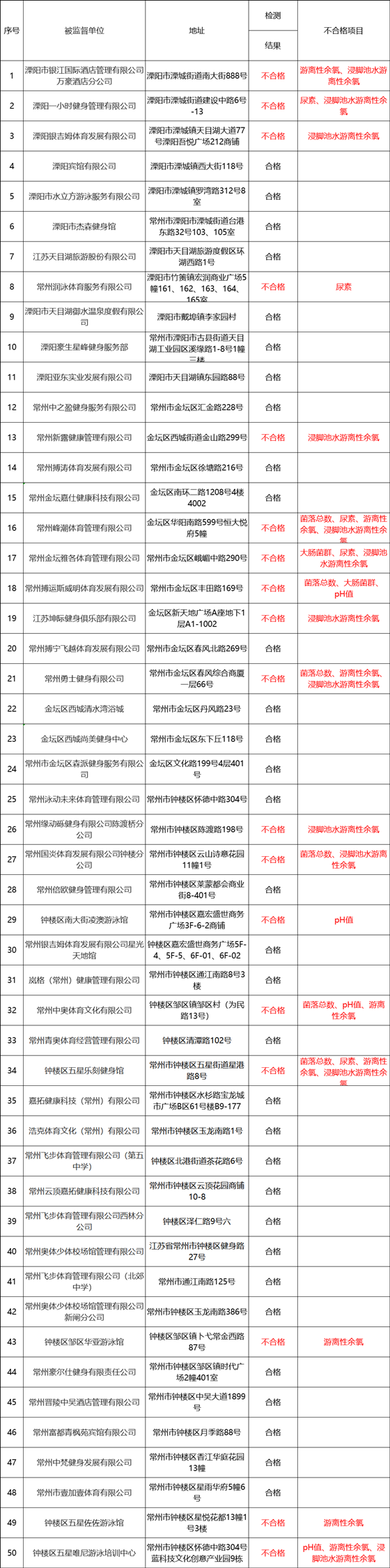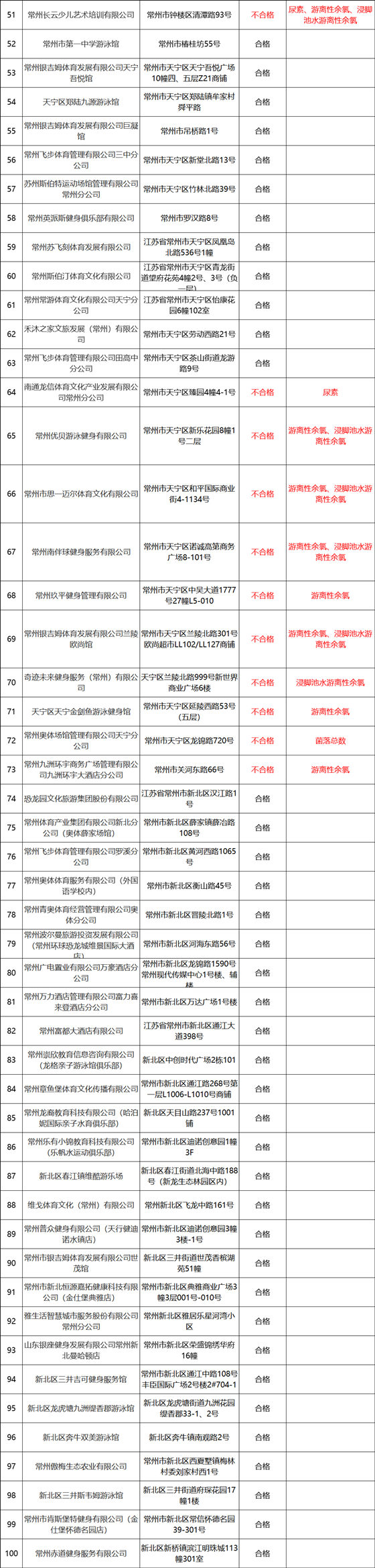 | 2023年常州市第一阶段游泳场所泳池水质抽检结果公示 |