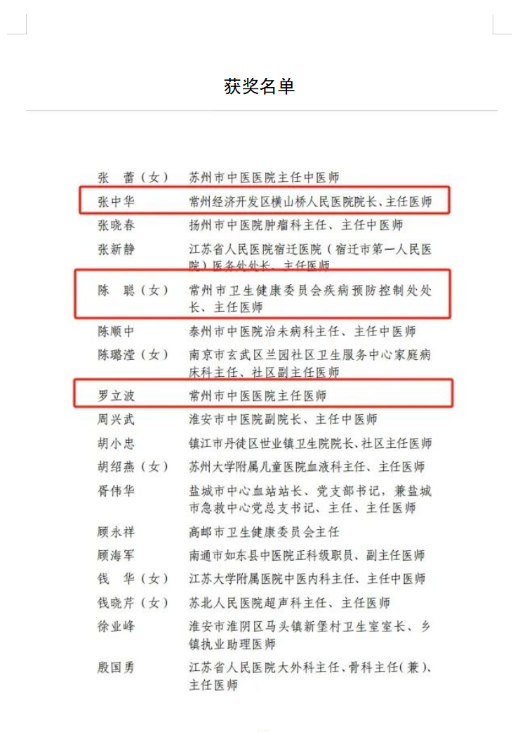 | 常州卫健系统3人获“全国卫生健康系统先进工作者”荣誉称号 |