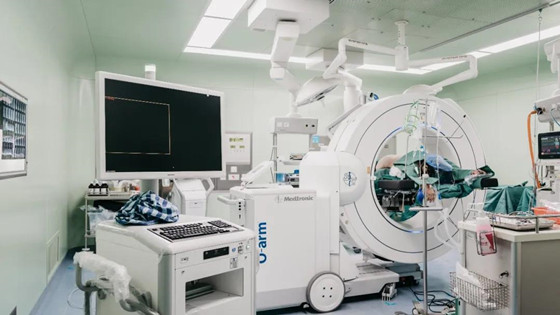 O型臂3D导航系统是利用最新引进的3D立体影像系统在术中为医生提供3D立体影像,在术前就可规划模拟出立体重组影像与各层面影像,为主刀医生计划最佳的手术路径。术中还可将患者放进仪器中,用完整360度自动环型扫描取像,从而即时更正路径规划与导航,避免伤害到周围的神经血管等重要器官组织,大大提高病人手术安全,准确定位,减少病患风险及并发症的发生。据统计,3D导航引导下的O-arm系统,能让医生手术视角更广、判读脊柱状况更精确,置入钢钉的准确度,也从原来传统开放手术的80%提升至100%,从而大大提高了手术安全性。