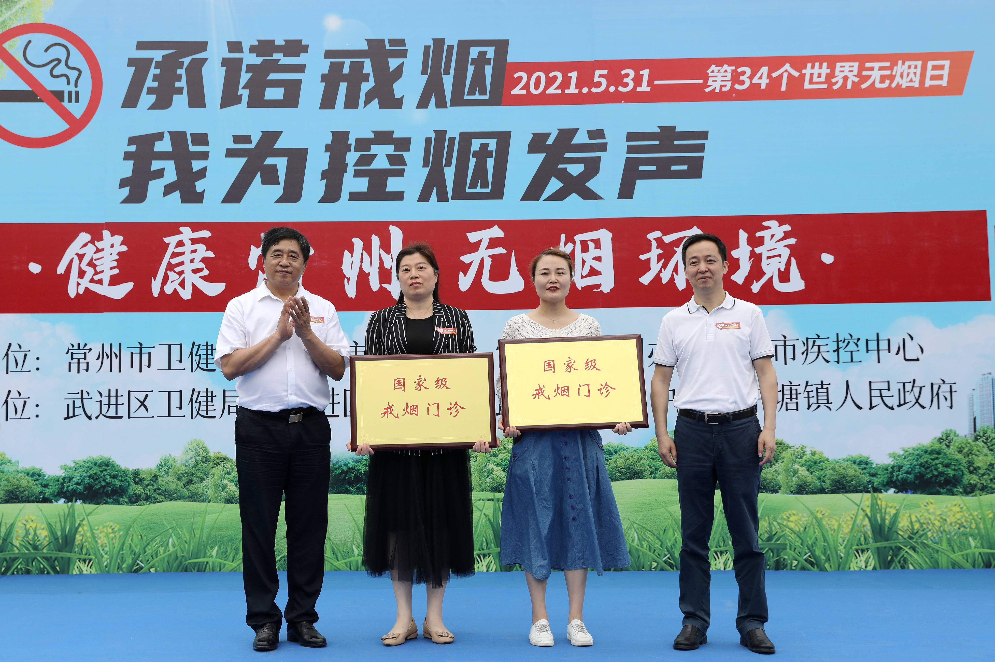赵兴光、潘国才为金坛区中医医院、天宁区红梅街道社区卫生服务中心颁发了国家级戒烟门诊铜牌。武进人民医院宣读了建设国家级戒烟门诊的承诺书。