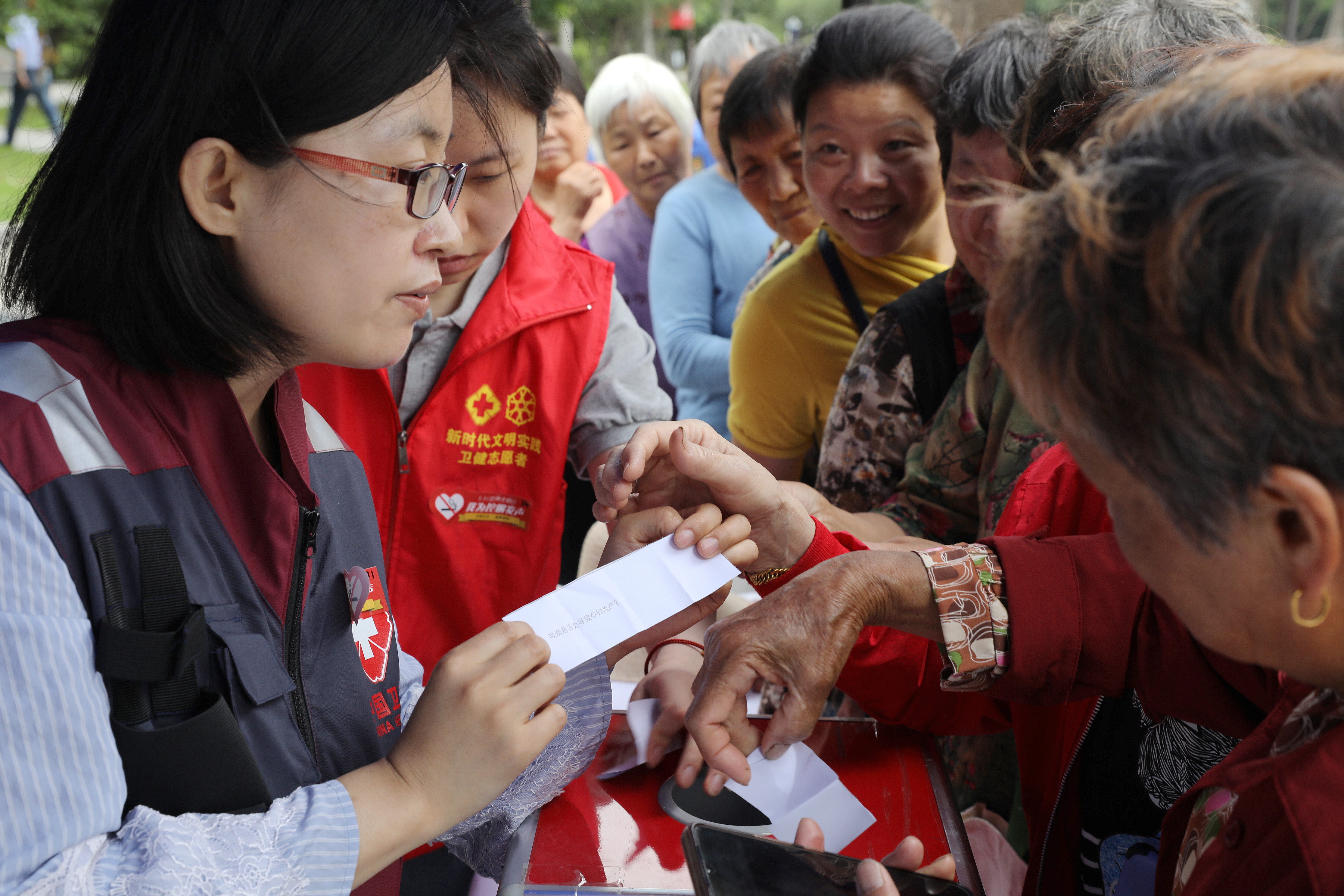 现场互动活动精彩纷呈,大家纷纷在控烟倡议签名墙上签名。在戒烟服务咨询区,金坛中医院、红梅医院的戒烟门诊专家现场提供了免费戒烟咨询和CO吹气检测。在专家义诊区,二院心内科、肿瘤科、呼吸科临床专家联合牛塘镇卫生院提供了义诊咨询服务。在有奖答题区,居民积极参与了控烟答题。