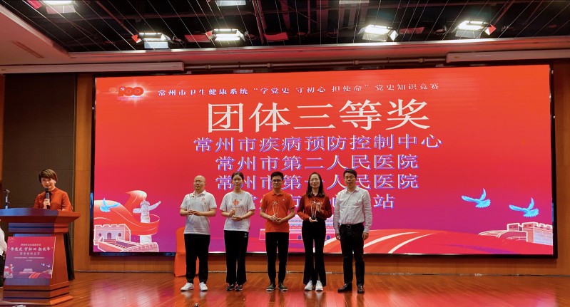 喜报喜报!我中心以高瀚、郑献智、丁梦珂组成的参赛队在今日常州市卫生健康系统“学党史 守初心 担使命”党史知识竞赛决赛中荣获三等奖!