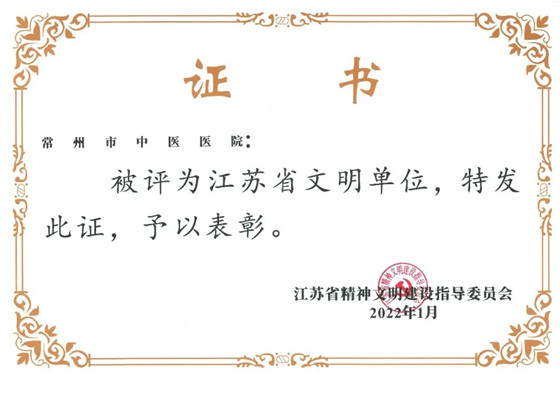 近日,常州市中医医院精神文明建设喜获“双丰收”,江苏省文明单位是江苏省精神文明建设指导委员会授予的综合性荣誉称号,常州市文明单位标兵(2019-2021年度)是由常州市精神文明建设指导委员会表彰命名的先进集体。
