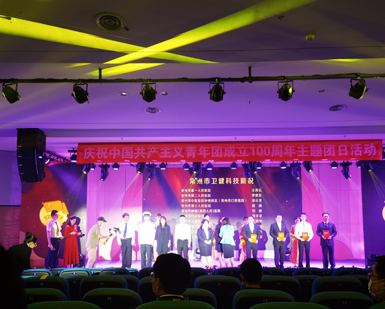 2022年5月21日下午,由共青团常州市卫生健康委委员会、共青团中国工商银行常州分行委员会联合主办的“喜迎党的二十大 永远跟党走 奋进新征程”庆祝中国共产主义青年团成立100周年主题团日活动,在常州市妇幼保健院·常州一院钟楼院区隆重举行。在主题团日颁奖仪式上,常州市卫生监督所周凯、陈云飞两位同志分别获“常州市卫健杰出青年”、“常州市卫健科技新锐”荣誉称号。