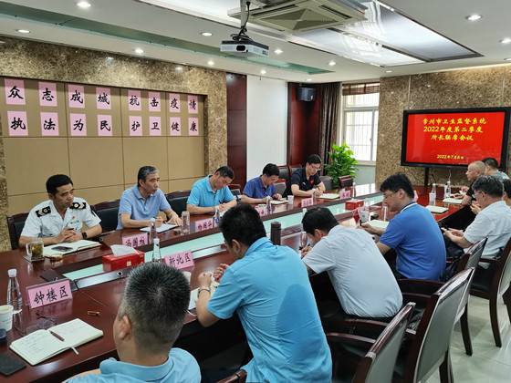 2022年7月6日,常州市卫生监督所组织召开2022年第二季度全市卫生监督系统所长联席会议,常州市卫健委相关处室负责人,各辖市区卫生监督所所长,市卫生监督所领导班子成员参加会议。
