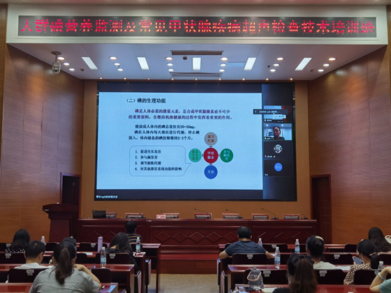 本次培训特邀省疾控中心地方病防制专家们通过线上会议形式,深入解读了《中国居民补碘指南》,详细讲解了人群碘营养监测、碘盐监测、甲状腺B超检查及相关注意事项;邀请了医院超声科专业B超医生讲解了甲状腺常见疾病超声检查及诊断,并现场进行了甲状腺B超检查示教;市疾控中心专家们还讲解了《江苏省重点地方病控制和消除评价实施办法》、《碘缺乏病消除标准及地方性甲状腺肿诊断标准》,并就碘缺乏病防制进展和挑战、碘缺乏病健康教育热点问题等进行了现场讨论和交流。