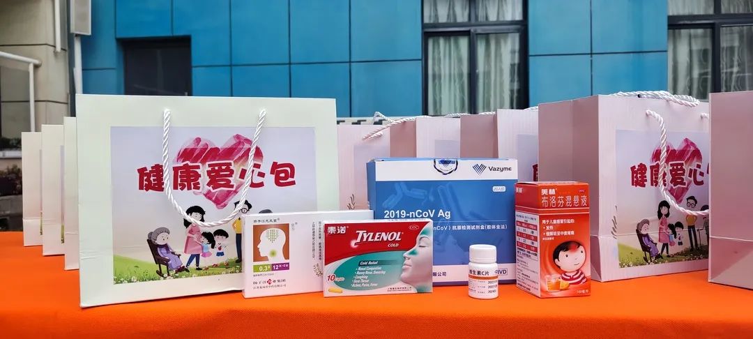 “健康爱心包”分为两类:一类是儿童版,一类是成人版包内包括退烧药、感冒药、维生素C片和抗原检测试剂等家庭常备药物。