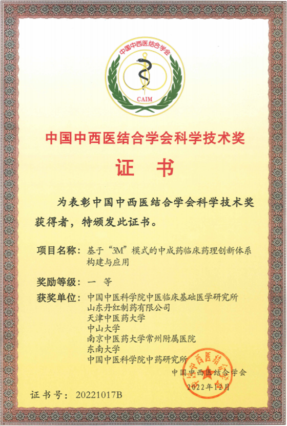 这两个奖项分别代表了全国和全省中医药行业最高科技奖项,也是对申春悌教授几十年如一日专注中医药科研的见证和回报!