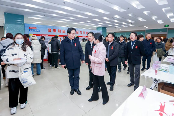 12月1日上午,常州市“世界艾滋病日”现场活动在常州纺织服装职业技术学院举办。市人民政府副秘书长戴胡爽,市卫生健康委党委书记、主任何小茜,常州纺织服装职业技术学院党委副书记、院长洪霄,武进区人民政府副区长张小虎,市卫生健康委副主任、市疾病预防控制局局长潘国才,市疾控中心党委书记、主任姚昉,武进区卫生健康局党委书记、局长左朝辉,武进区疾控中心主任史宏等领导莅临活动现场,慰问一线工作人员。