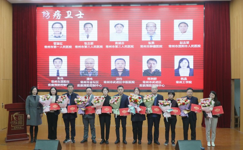 常州市疾病预防控制中心党委书记、主任姚昉为防痨先锋颁奖并送上鲜花。
