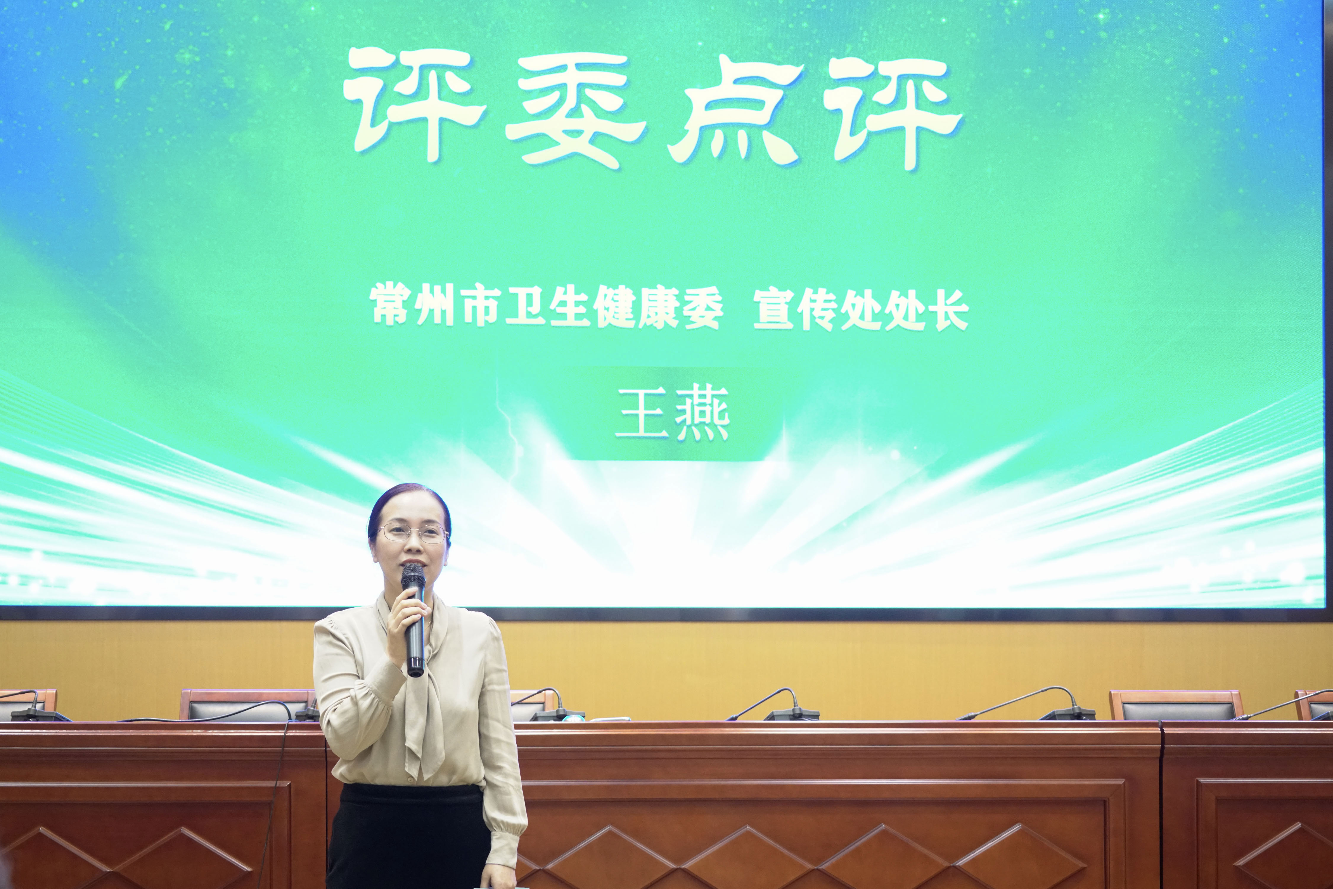 常州市卫健委宣传处处长王燕对本次科普大赛作了专业点评。她肯定了参赛作品形式多样、内容广泛,充分体现了疾控人认真做科普的工作精神。她强调,吸引人、影响人、说服人的健康科普才是好的科普,人人应做有人味的科普、有情怀的医师。