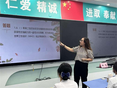 普妇科主任医师刘合芳以“青春期保健”为主题,讲述了青春期生理卫生、宫颈癌预防、心理健康等方面科普知识,让同学们了解青春期的特点、青春期的变化以及应对策略。副护士长徐艳以“青春期保健”为主题,进行有奖竞答,学生们积极举手抢答问题,现场答疑解惑,受到了卫校师生的一致好评。