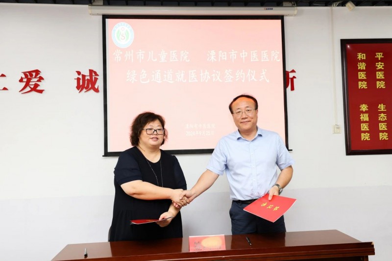 经过前期多次对接,9月25日上午,常州市儿童医院与溧阳市中医医院举行了合作签约仪式。溧阳市卫健局副局长李建强、常州市儿童医院副院长赵静、溧阳市中医医院院长史海波,以及双方单位相关人员参加。