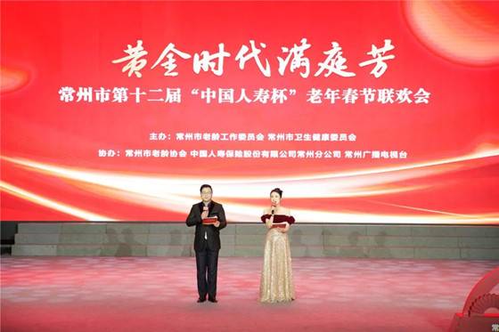 为深入实施积极应对人口老龄化国家战略,倡导积极老龄观、健康老龄化,持续加强老年人精神关爱工作,展示当代老年人热爱生活、积极向上的精神风貌,营造欢乐祥和、健康文明的社会文化氛围,促进社会和谐,2024年1月3日下午,由常州市老龄工作委员会、永乐汇主办,常州市老龄协会、中国人寿保险股份有限公司以及常州广播电视台协办的常州市第十二届“中国人寿杯”老年春节联欢会在新北区文化馆举行。