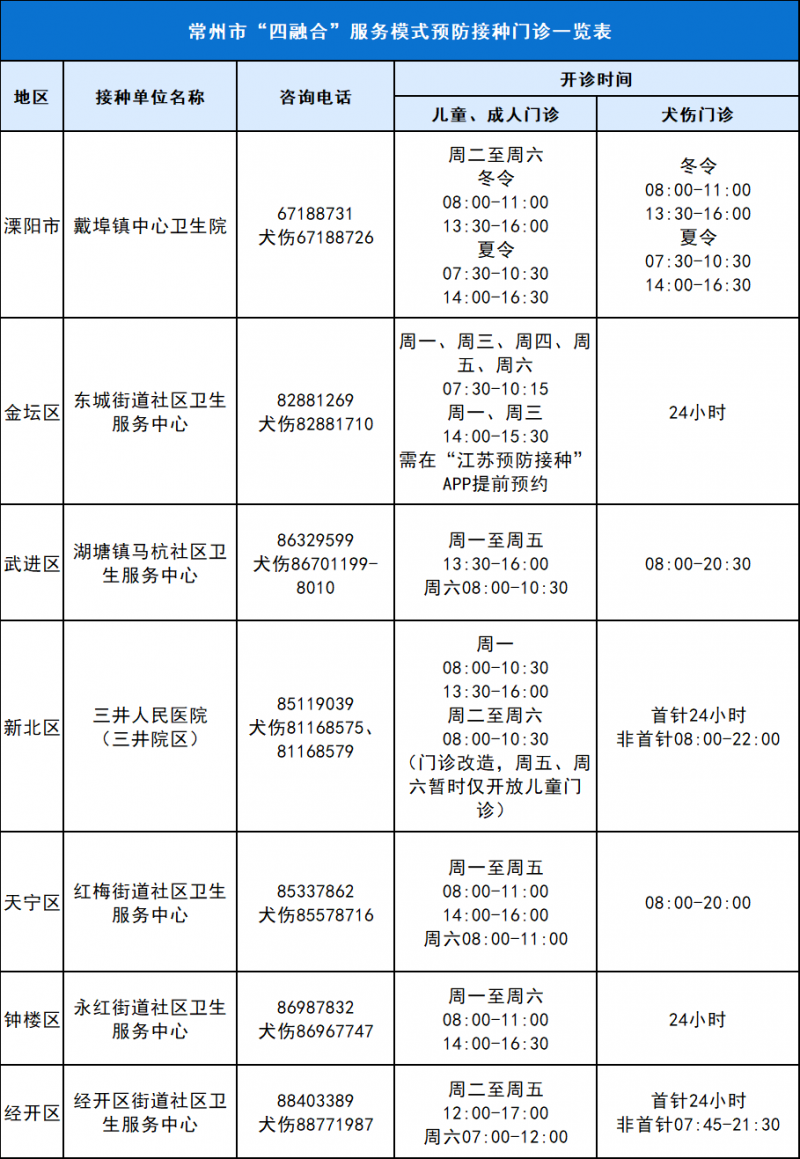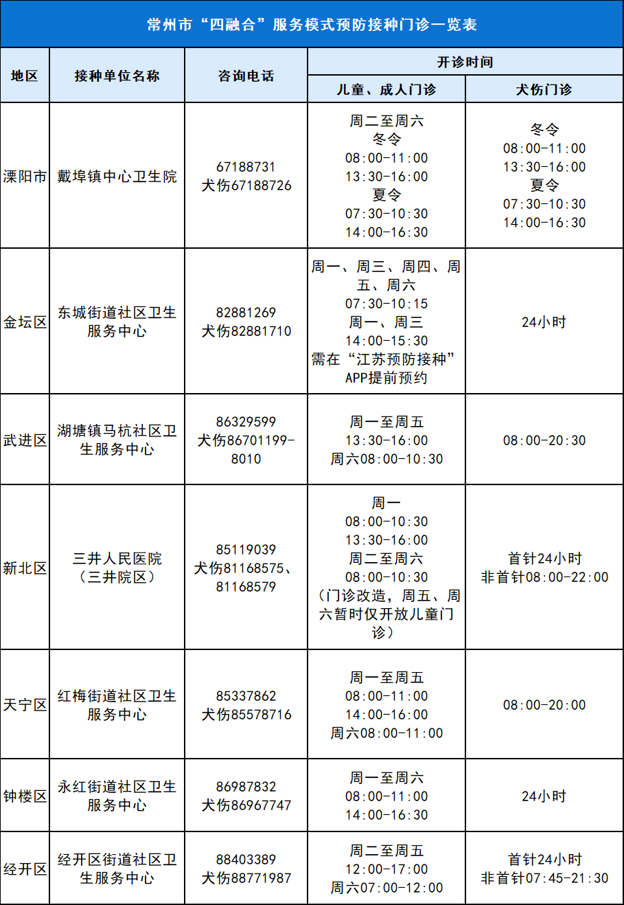 为让更多的市民体验到便捷、优质的预防接种服务,继8月6日常州市首家“四融合”服务模式预防接种门诊在钟楼区永红街道社区卫生服务中心启动运营后,近日,我市各辖市区均开设了一家“四融合”服务模式的预防接种门诊。